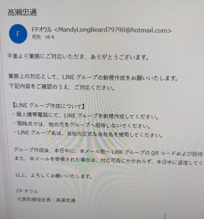 仮に受信した際にはLINE登録や返信はしないようにご注意ください。